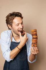 Baptiste est le maître créateur derrière chaque recette unique de Bonobie’s Cookies. Que ce soit le Douroucoulis, un cookie fondant au cœur de chocolat noir et éclats de noisettes, le Siamang, avec ses pistaches torréfiées et